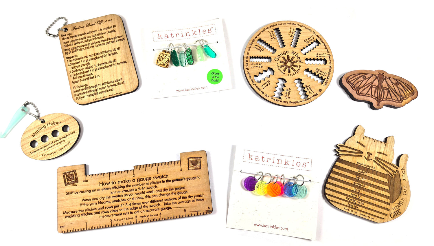 What's new at Katrinkles? Stitch markers, knitting tools, accessories for crocheting, project...