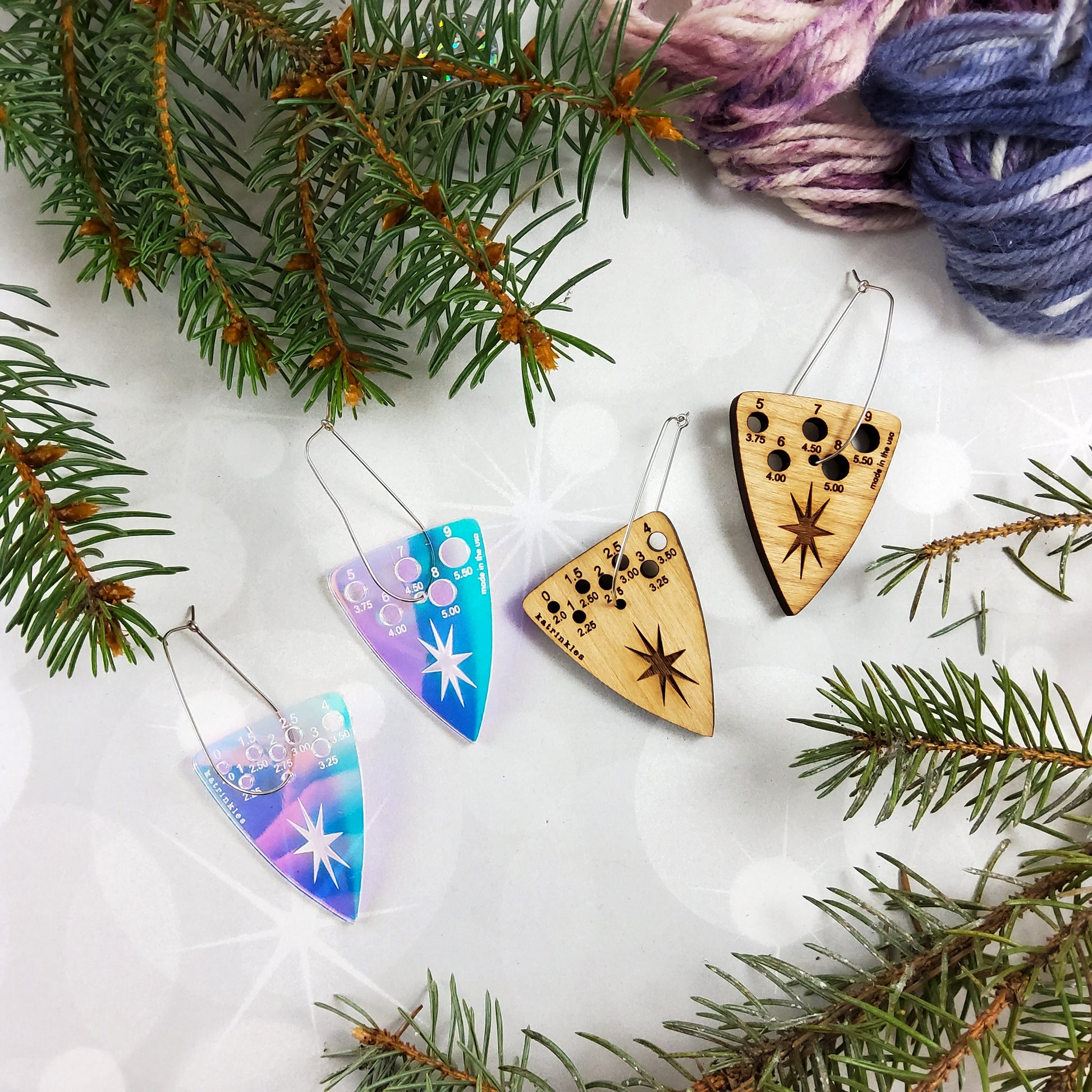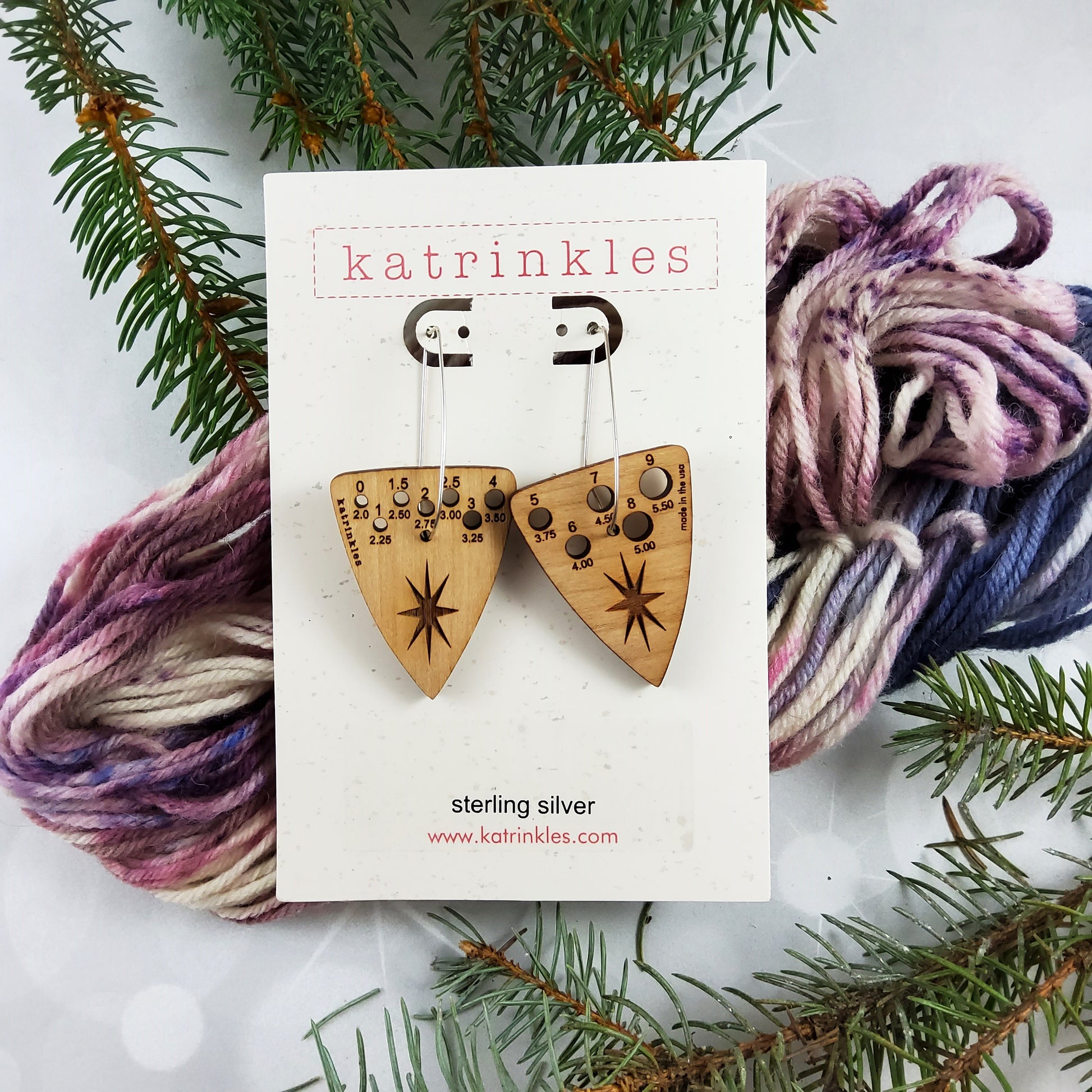 Available in warm-toned natural cherry or eye-catching iridescent acrylic, this pretty jewelry set is also a subtly disguised needle gauge (it just wouldn't be Katrinkles if it wasn't also a handy tool!)