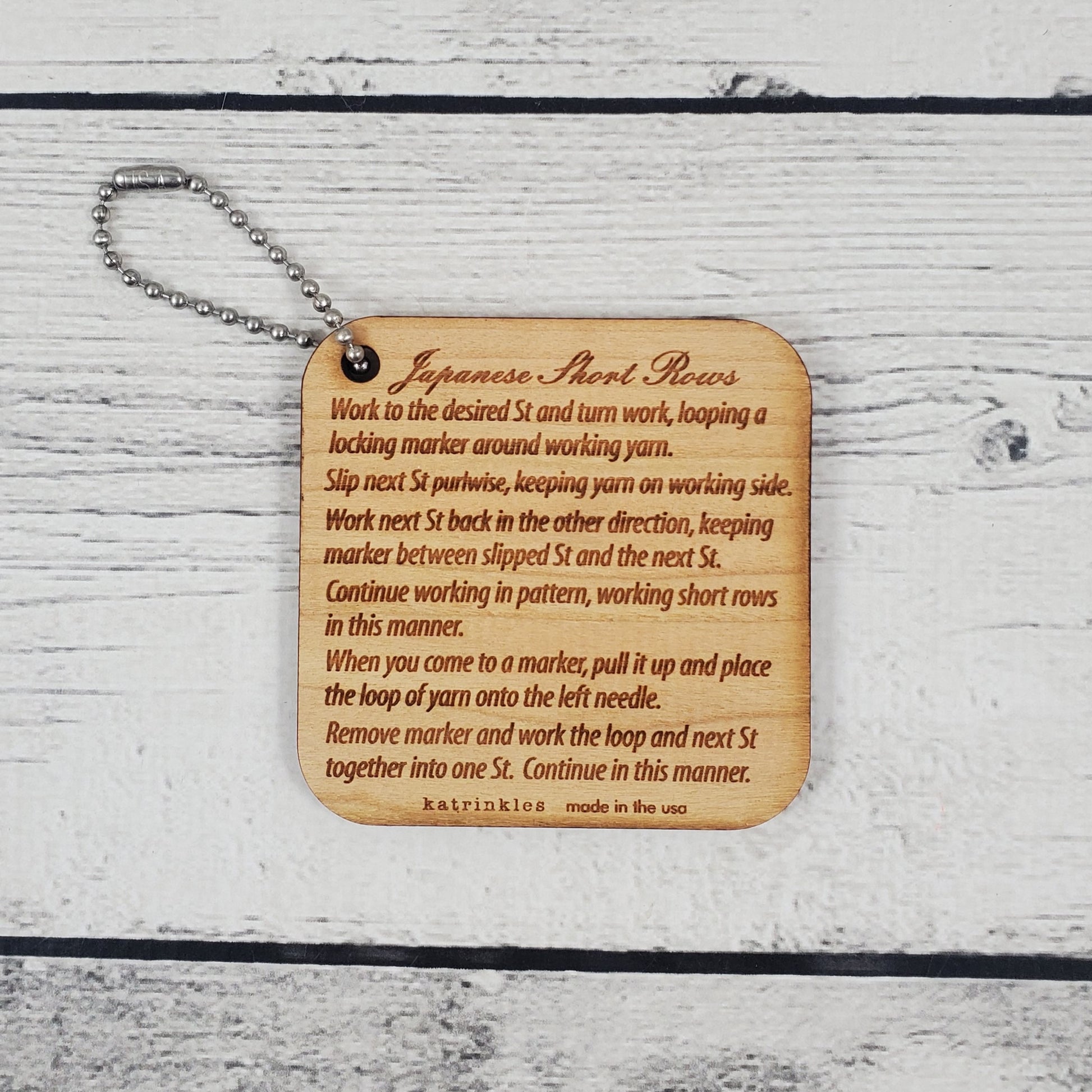 These lightweight, 2.5" square Mini Tools are compact and handy to have along, whether you tuck them inside your knitting bag or hang them from the ball chain loop outside for easy access.