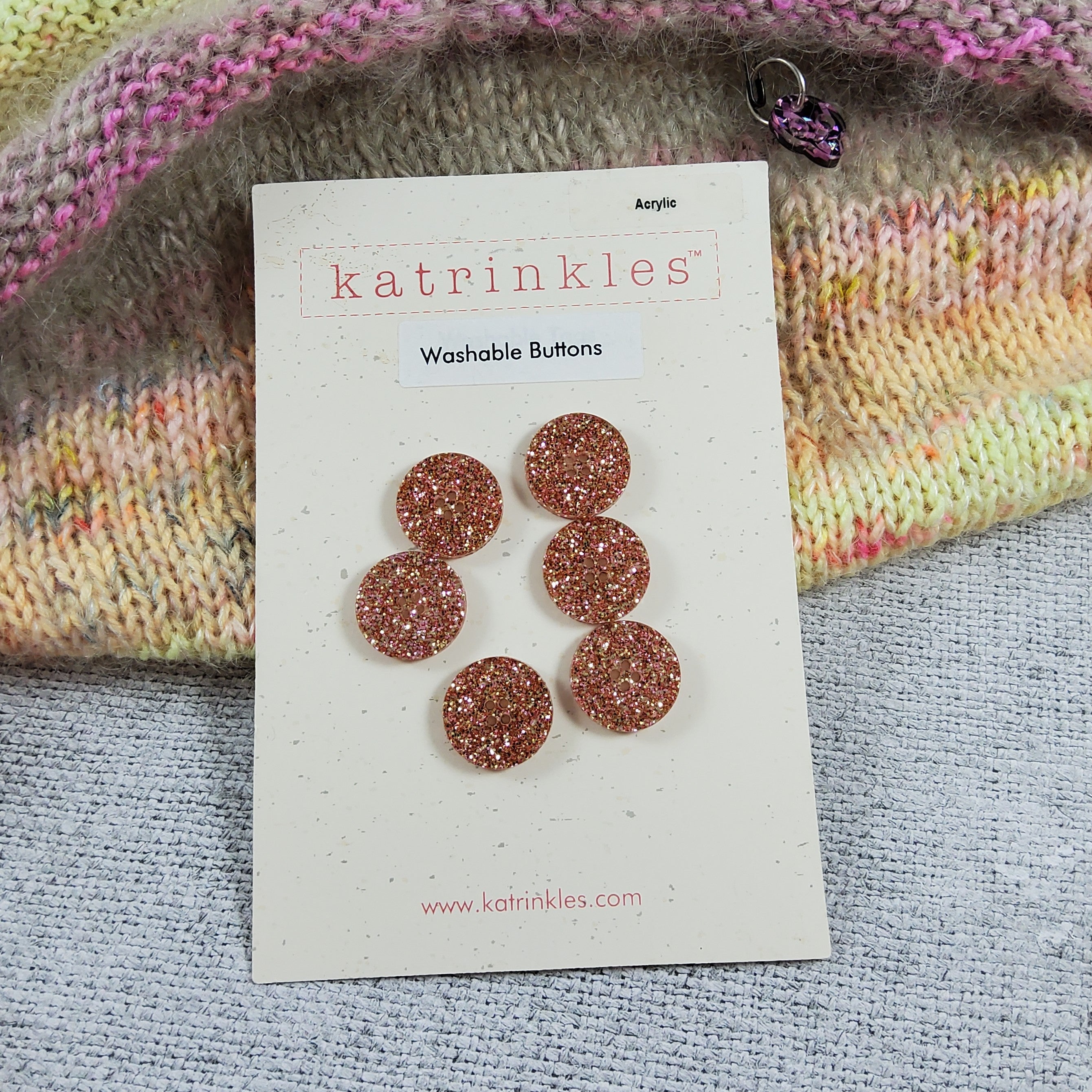 We've captured the rose golden light of warmer days in these glamorous, glittering buttons. Perfect for glowing up handknit sweaters and adding a bit of sparkle to knitwear of all kinds. Buttons are 3/4" round and come on a card of six.
