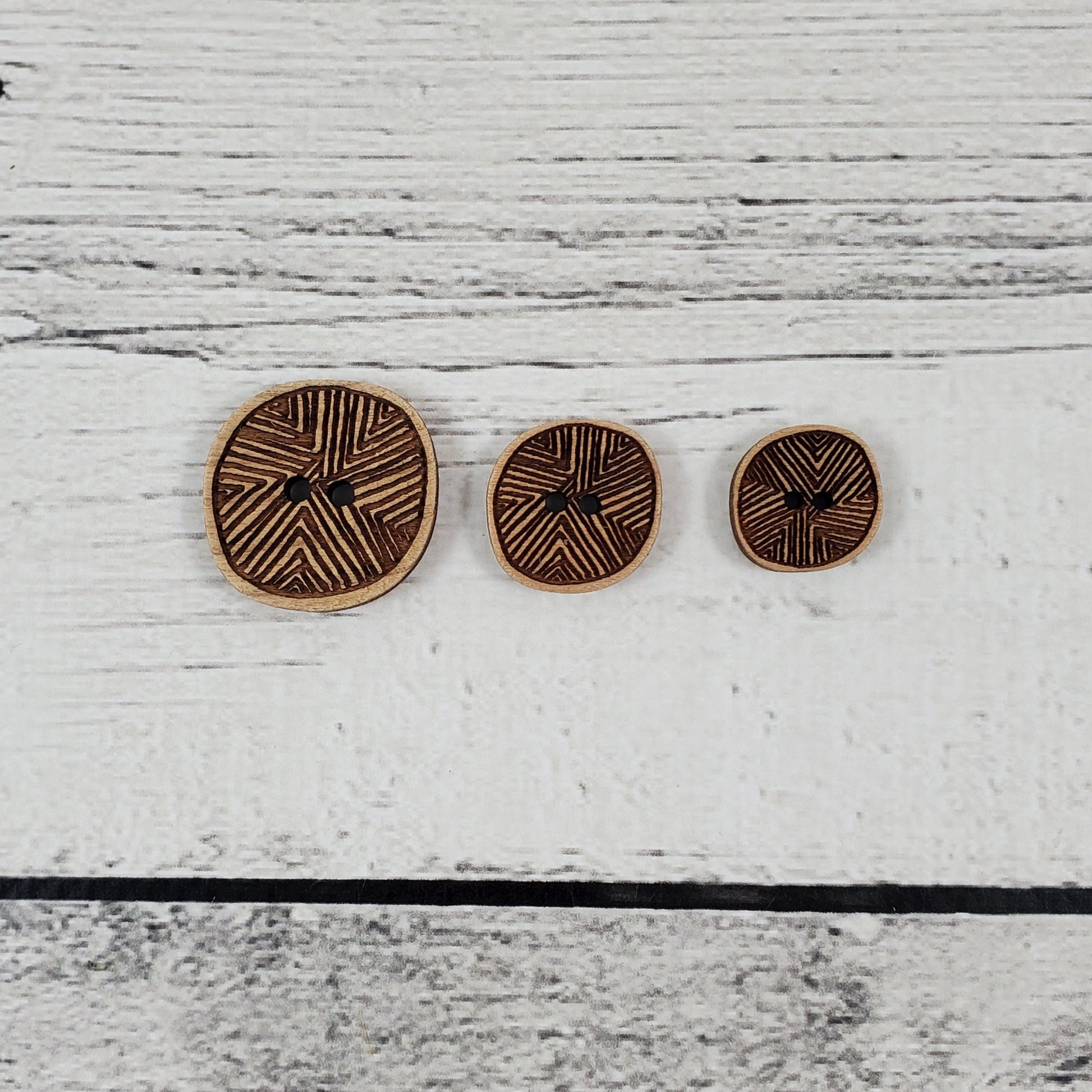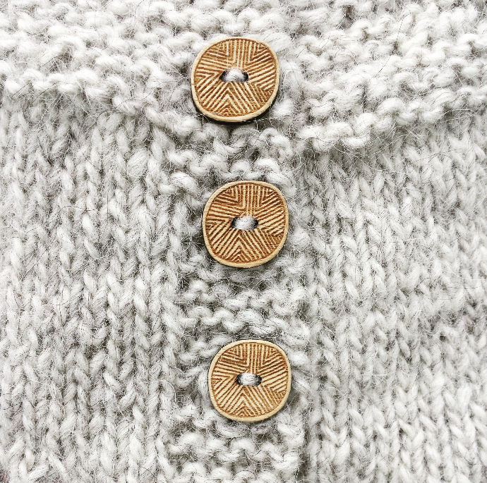 The organic outer shape of these buttons is filled in with an abstracted star shape of unique geometric lines taken directly from one of Katy’s doodles.