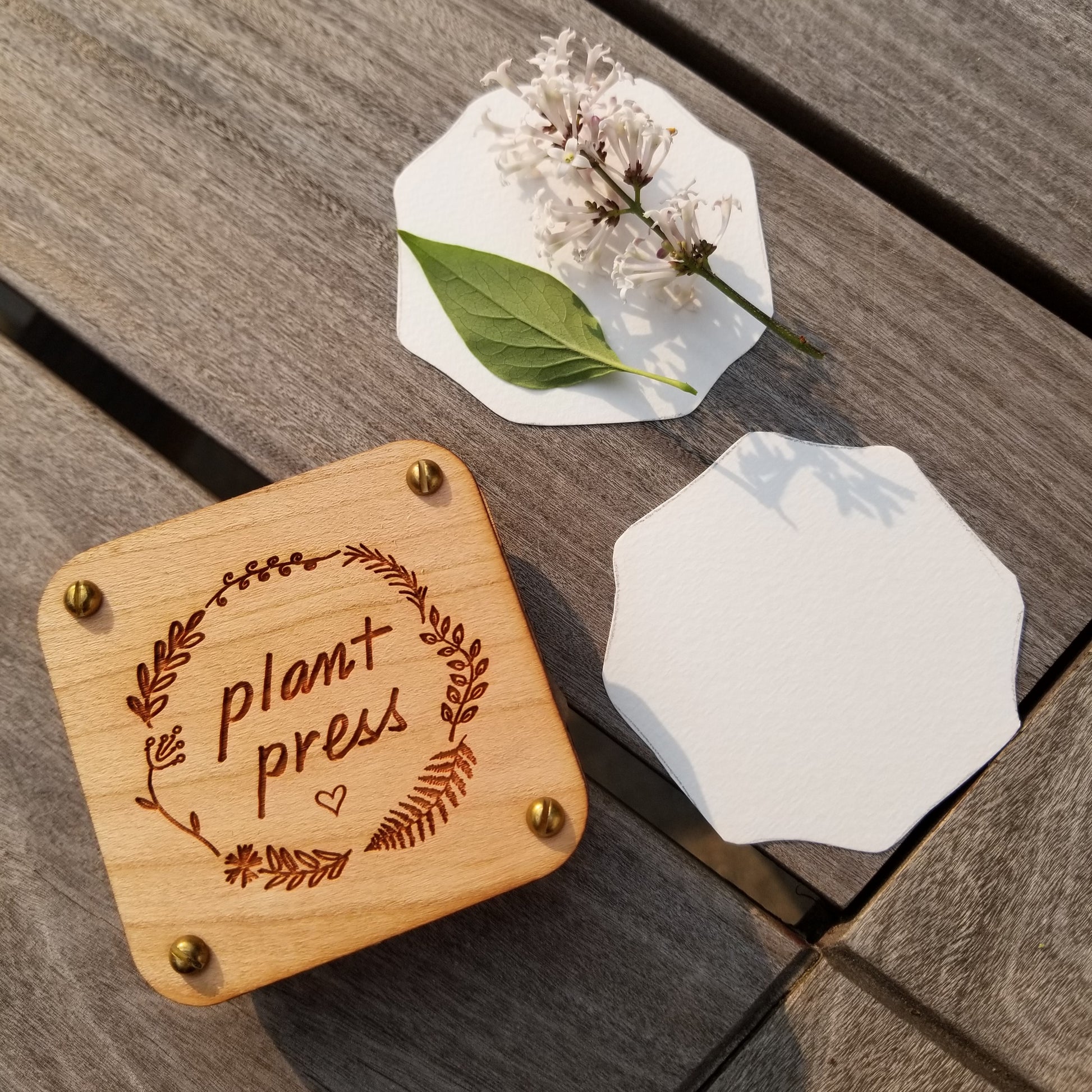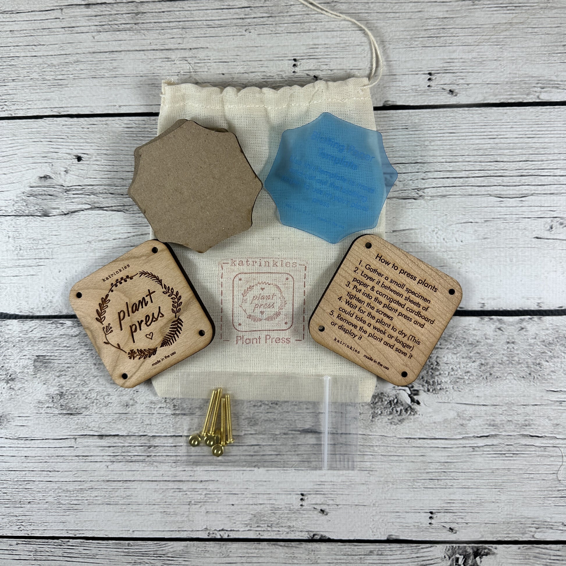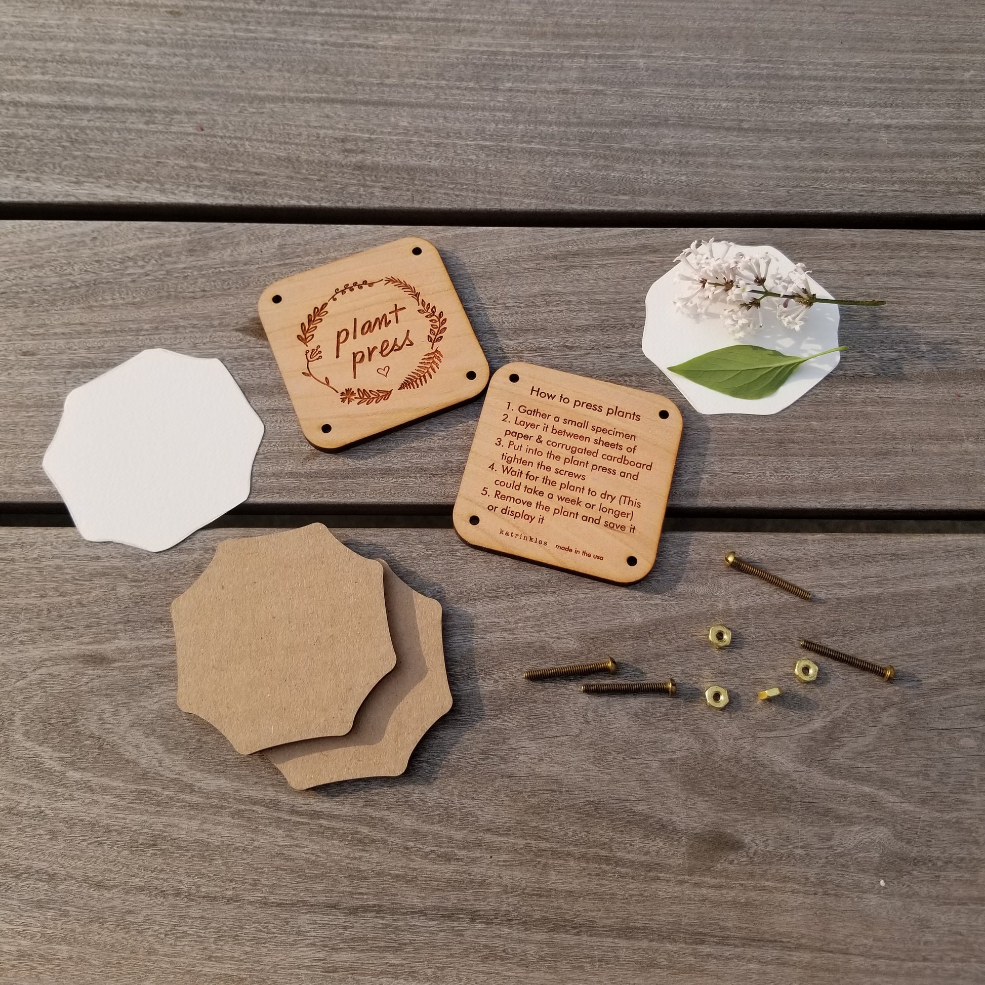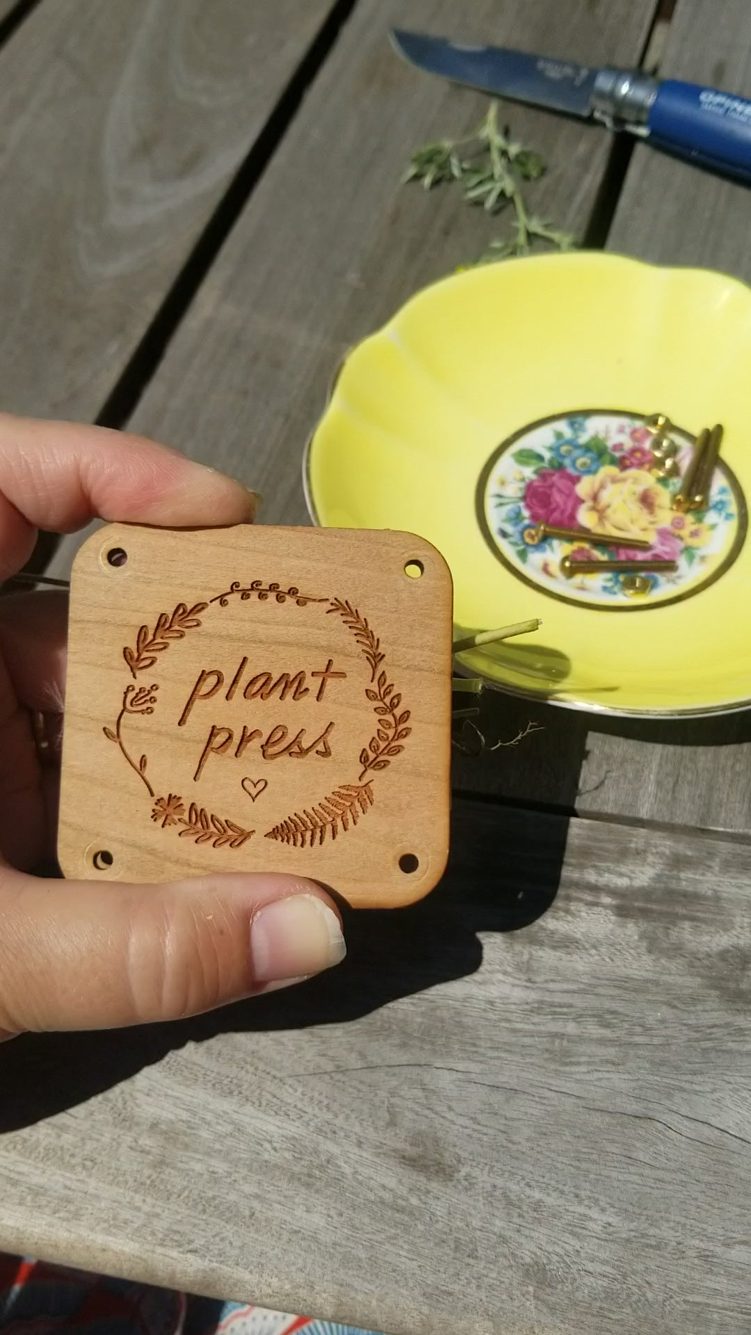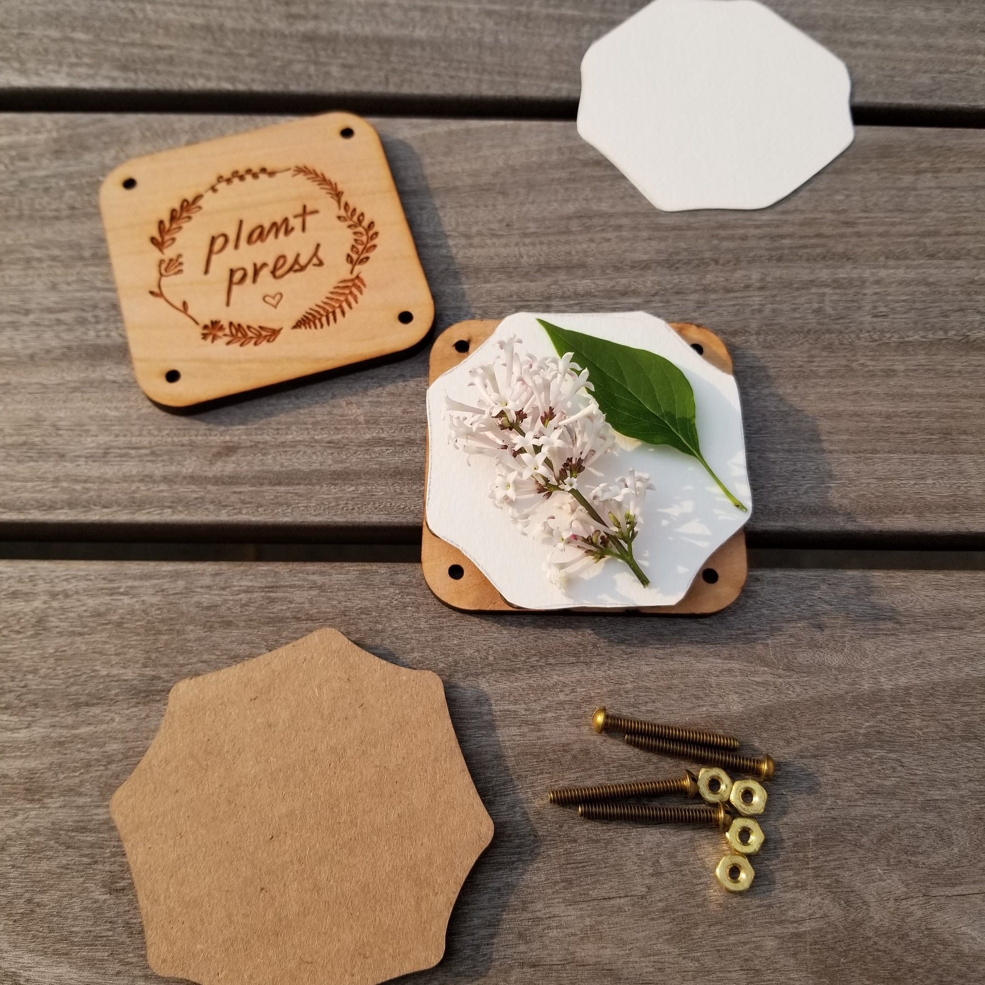 - 2 piece Wooden Plant Press w/ Standard Nut & Bolt Brass Hardware (instructions etched on one side)