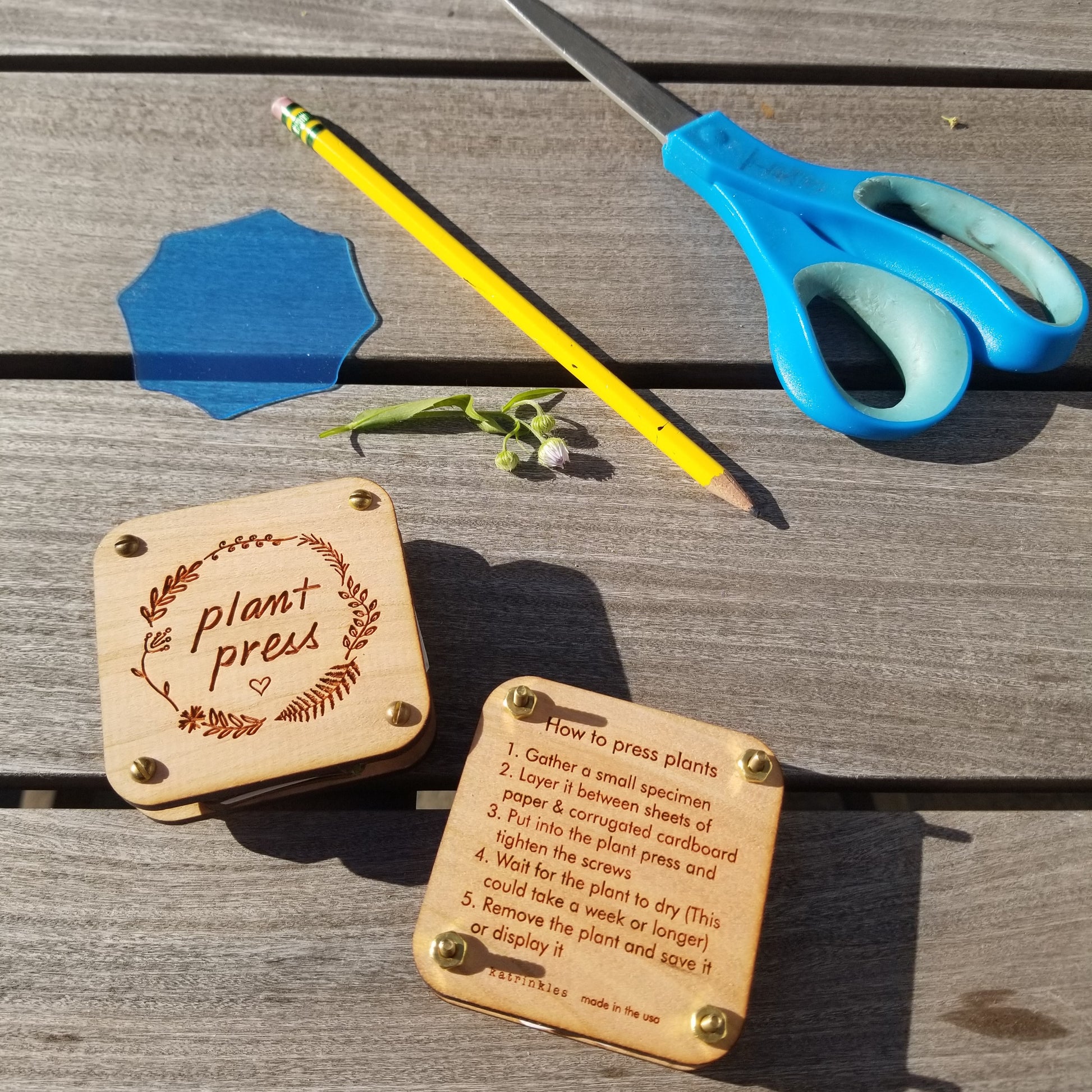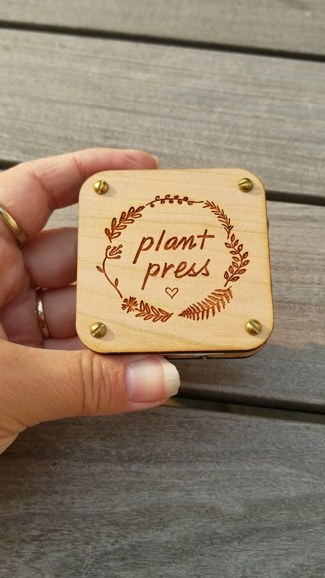 The Plant Press is designed for portability and ease of use, with clear instructions etched on one side. Like our other tools, it is made out of durable and attractive hard wood, and uses sturdy brass hardware. It's a unique addition to any crafter's collection.