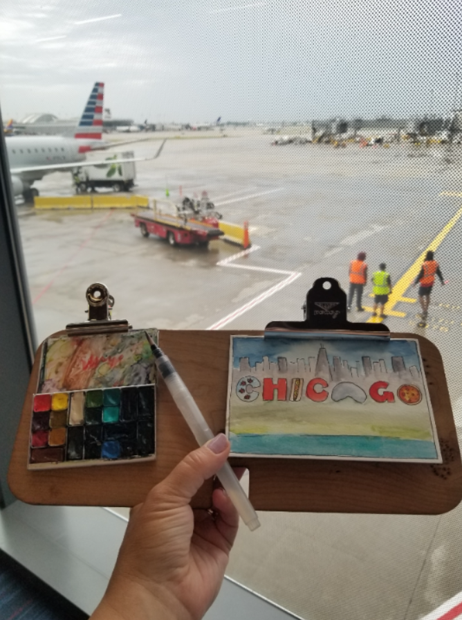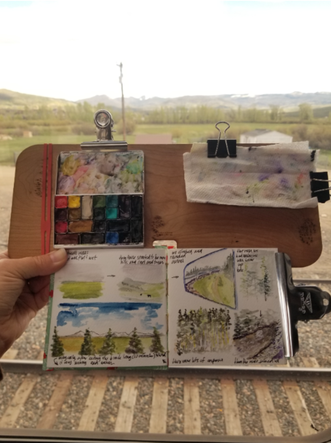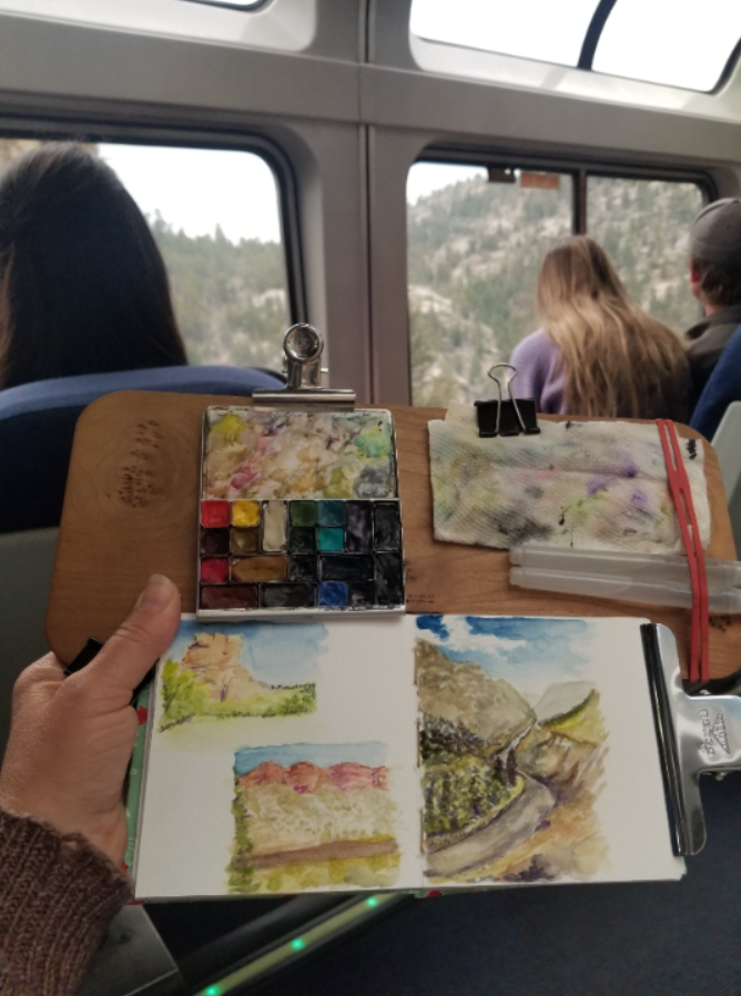 This portable, handheld easel is an ideal surface for watercoloring on the go. Use clips or rubber bands to attach a paint palette, cloth, watercolor journal and brushes. With your tools attached to the easel, you can easily paint in your lap, or hold the easel in one hand and paint with the other.