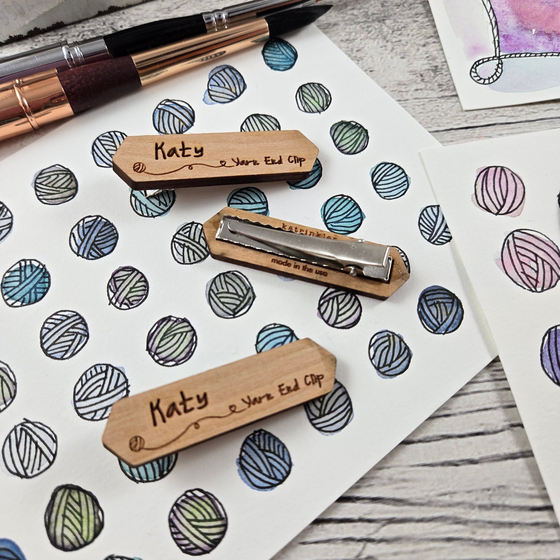 Keep your yarn organized, and identified, with this set of three cute yarn clips personalized with your, or your giftee's, name. A thoughtful gift for fiber friends!
