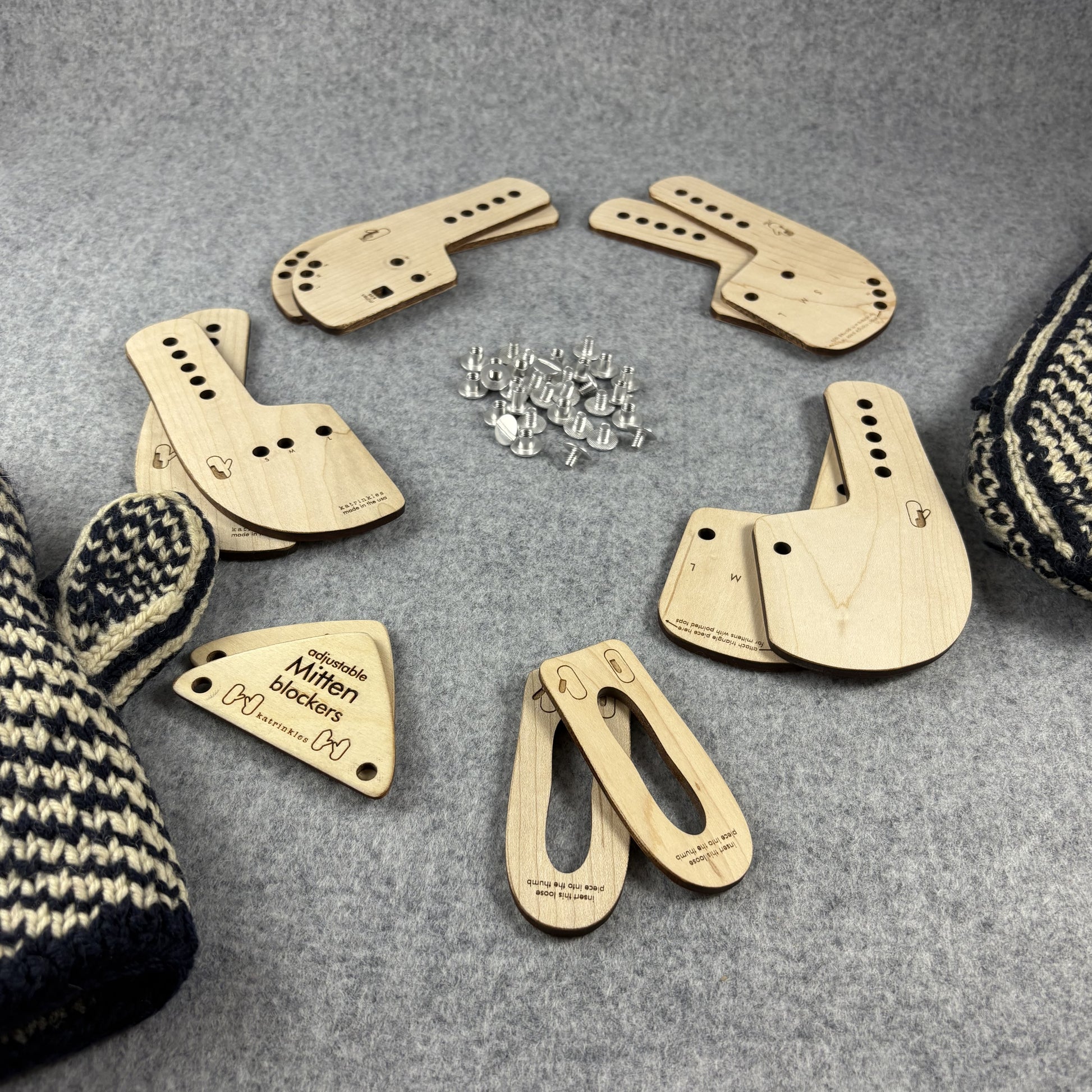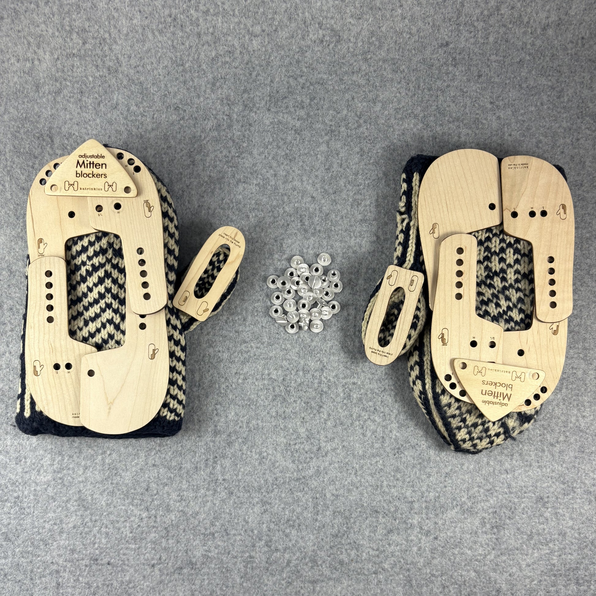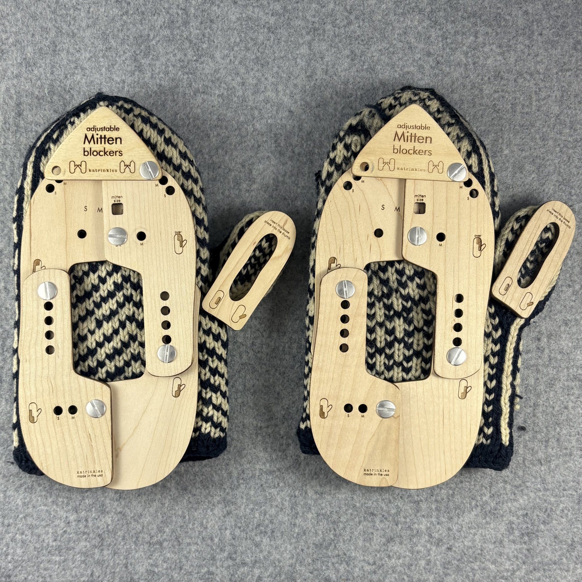 These adjustable mitten blockers are great for knitters who frequently wash and block mittens. They are sold in a pair that you assemble.