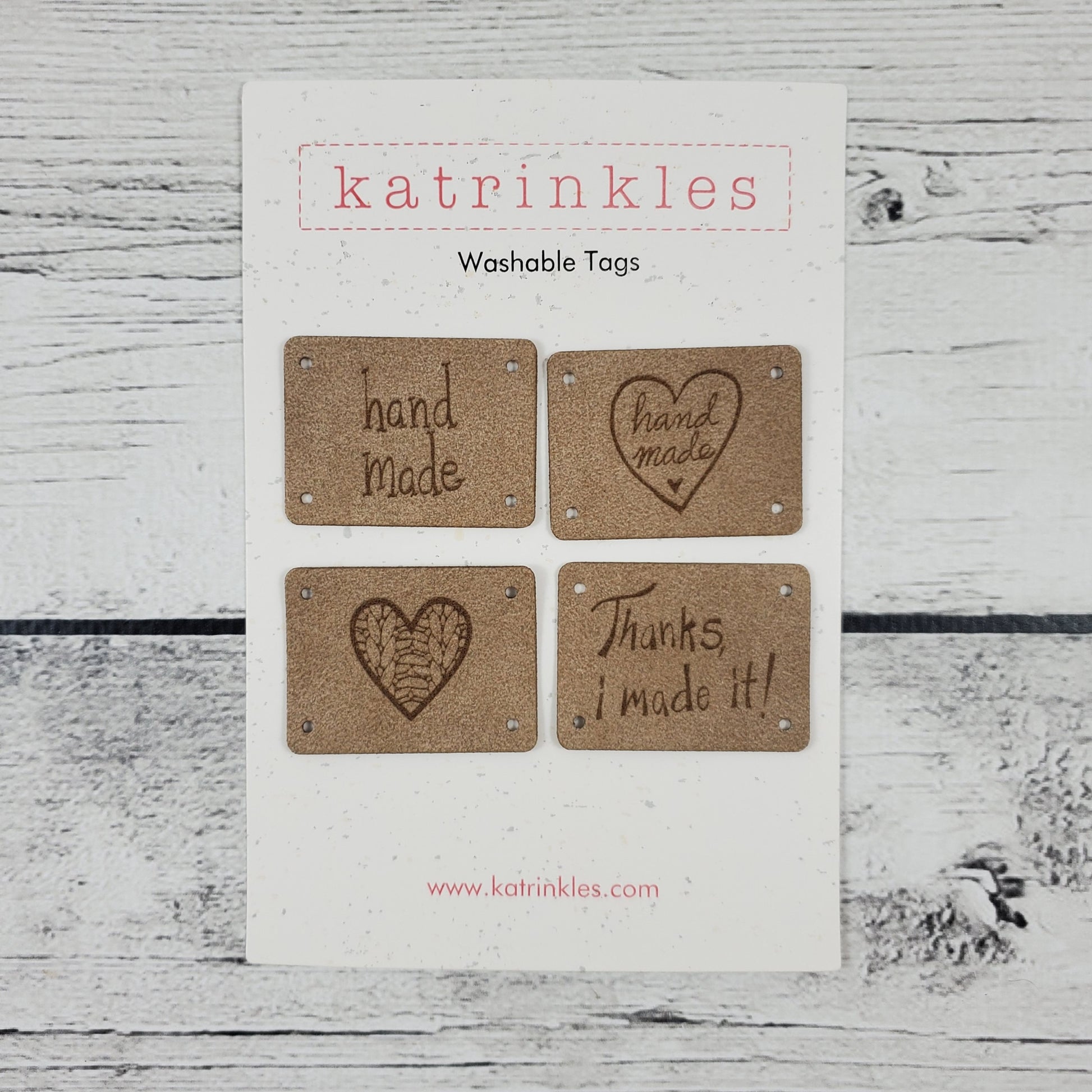 You put a lot of love into the things you knit, so why not show it with these adorable tags that express the pride and care that come with handmade items. Made of washable faux suede that is soft and resilient, each tag bears a special inscription and can be easily attached to a variety of projects to share, or wear, your knitting love.