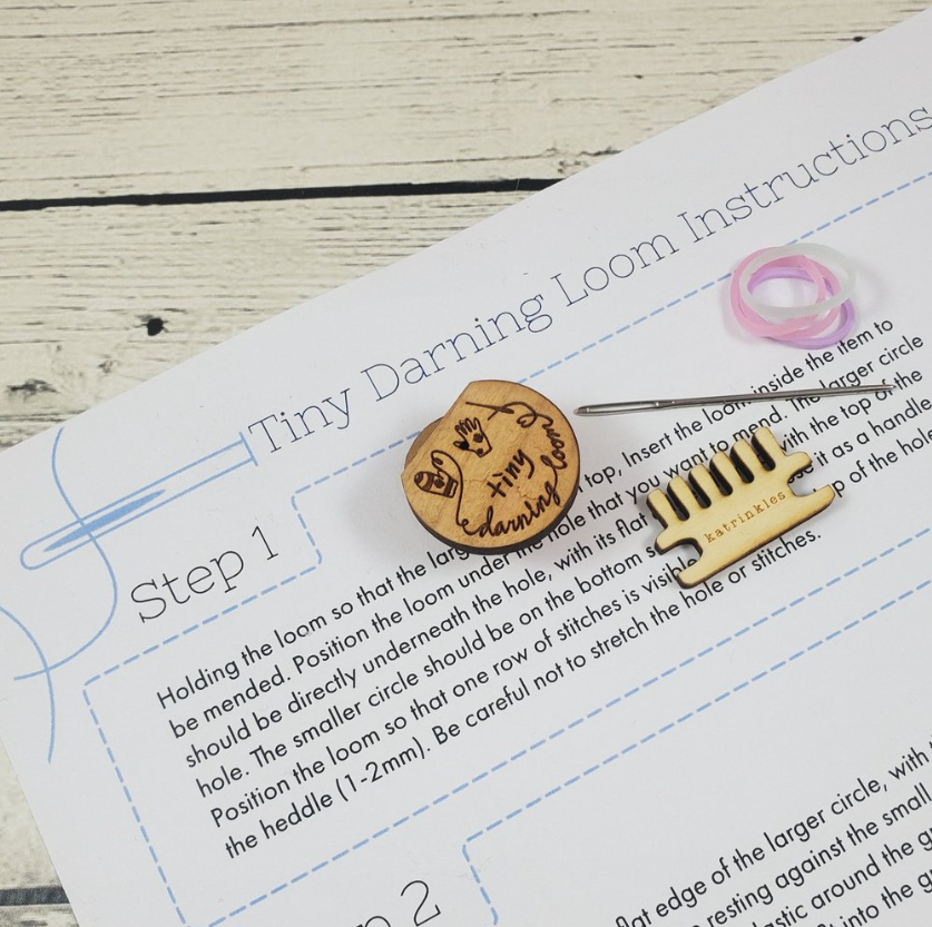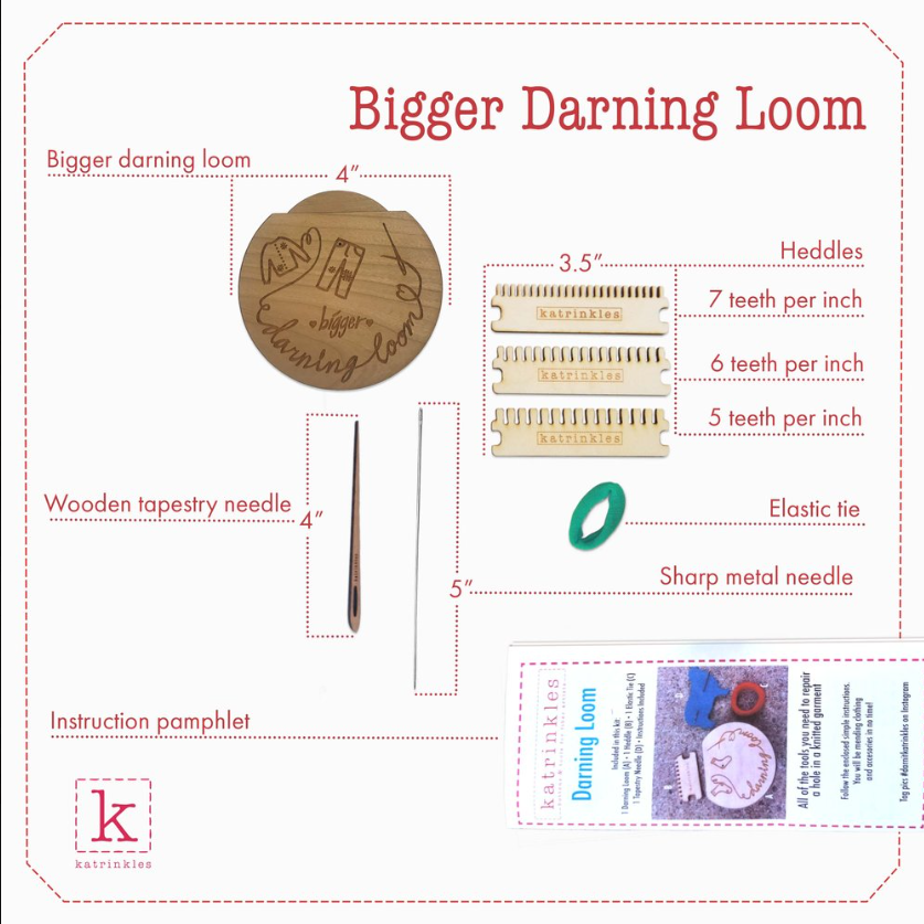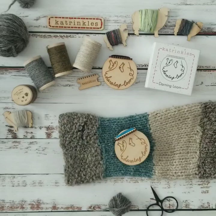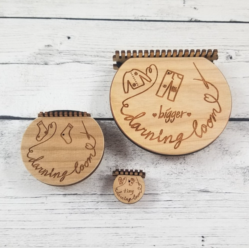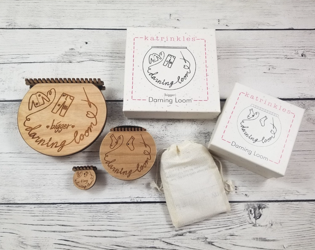 Choose from our Tiny Darning Loom Kit (perfect for mitten or glove darning and fixing tiny holes), our original Smaller Darning Loom Kit (perfect for sock darning or fixing smaller holes), an add-on Heddle Expansion Pack for the Smaller Darning Loom Kit, or our Bigger Darning Loom Kit (for mending large holes).
