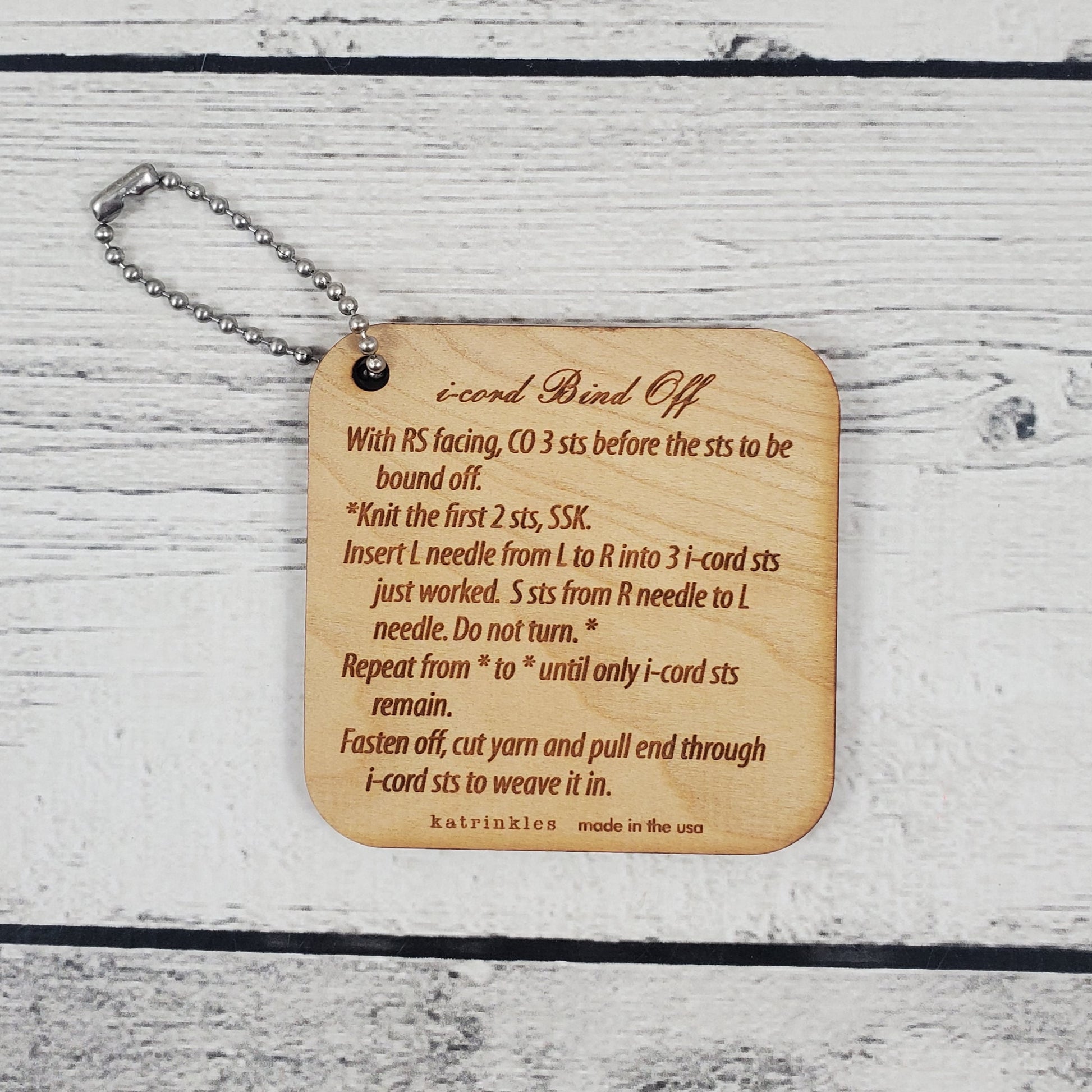 These lightweight, 2.5" square Mini Tools are compact and handy to have along, whether you tuck them inside your knitting bag or hang them from the ball chain loop outside for easy access.