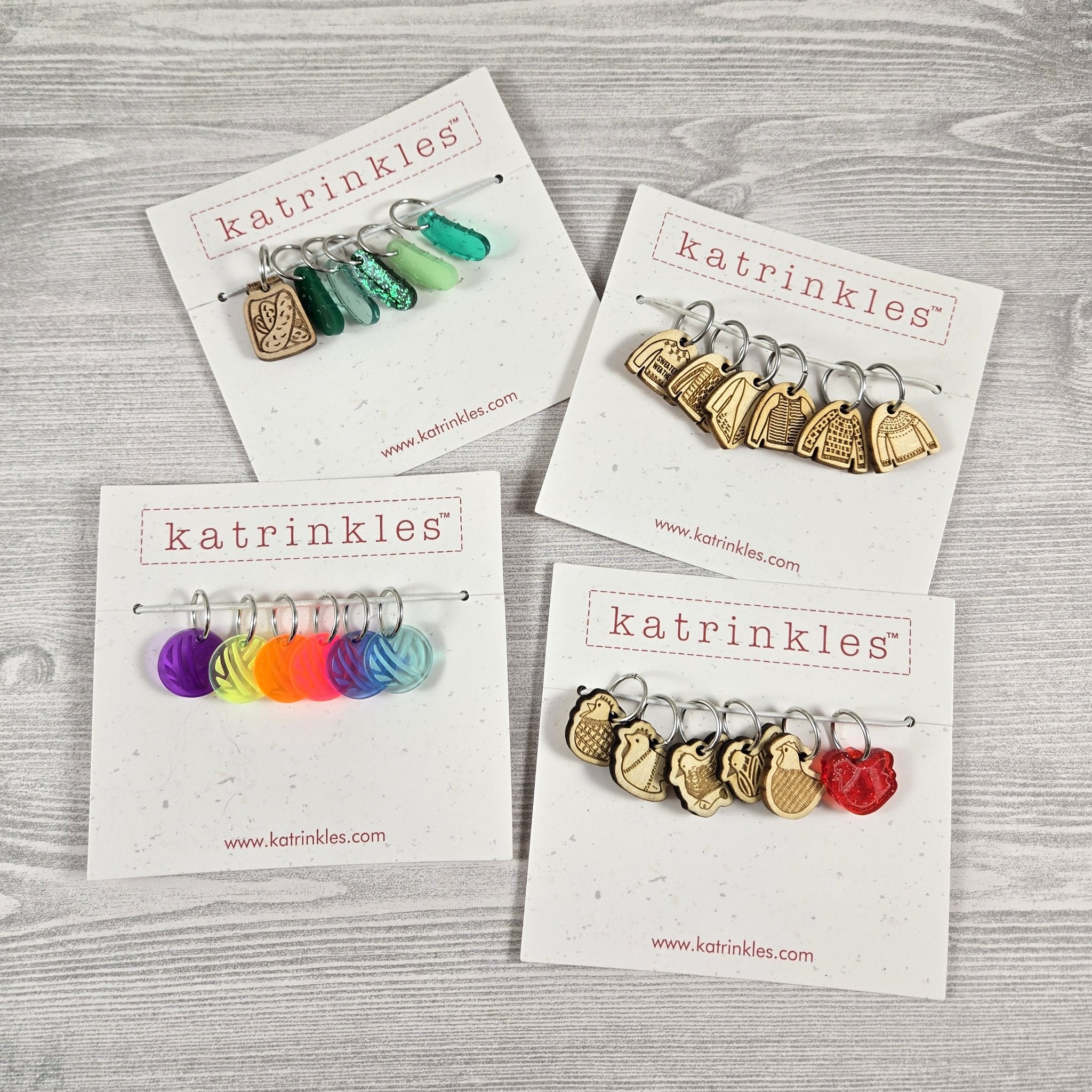 Stitch Markers are useful, for sure; but to be honest, we really love them because they're so stinking cute! This bundle gathers four of our most popular, and most adorable, stitch marker sets - Pickles, Yarn Chickens, Assorted Sweaters, and Neon Yarn Balls - for a fun, vibrant addition to any knitter's stitch marker collection.