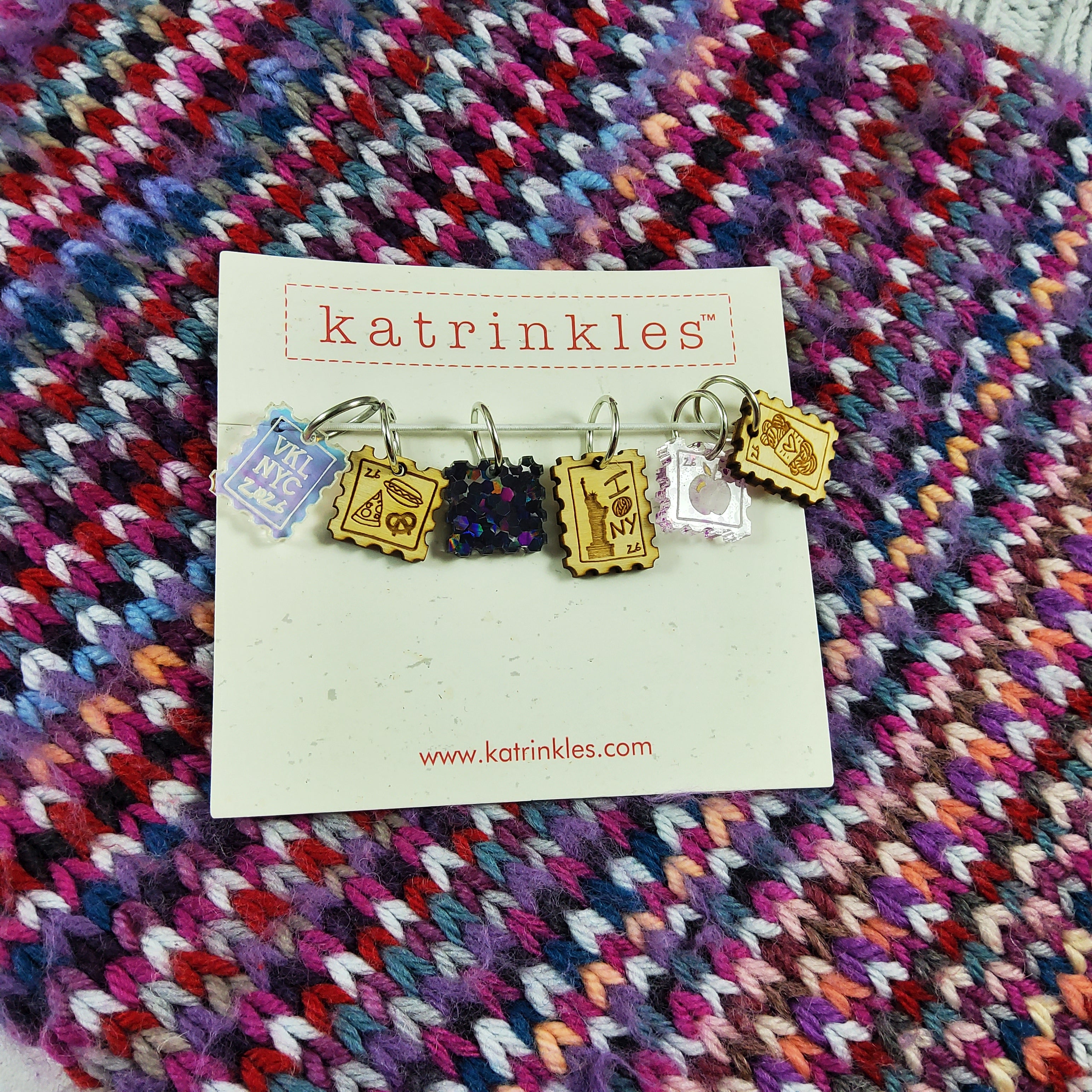 "Stamp" your handknit projects with this commemorative set of stitch markers that mimic postage. Celebrating knitting and New York, this Stamp Stitch Marker Set is a great keepsake of the fun you had at VKL 2026.